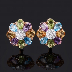 Серьги микс аметист, топаз, хризолит (серебро 925 пр. позолота) огранка