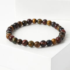 Браслет микс бычий глаз, соколиный глаз, тигровый глаз 6 мм 20 см