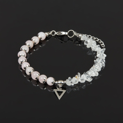 Браслет микс горный хрусталь, розовый кварц (сталь хир.) 6 мм 18 см (+3 см)