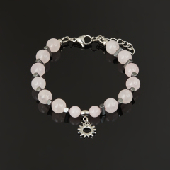 Браслет микс гематит, розовый кварц (сталь хир.) 8 мм 18 см (+3 см)