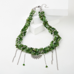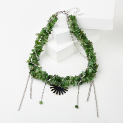Колье нефрит зеленый Россия (сталь хир.) 45 см (+7 см)