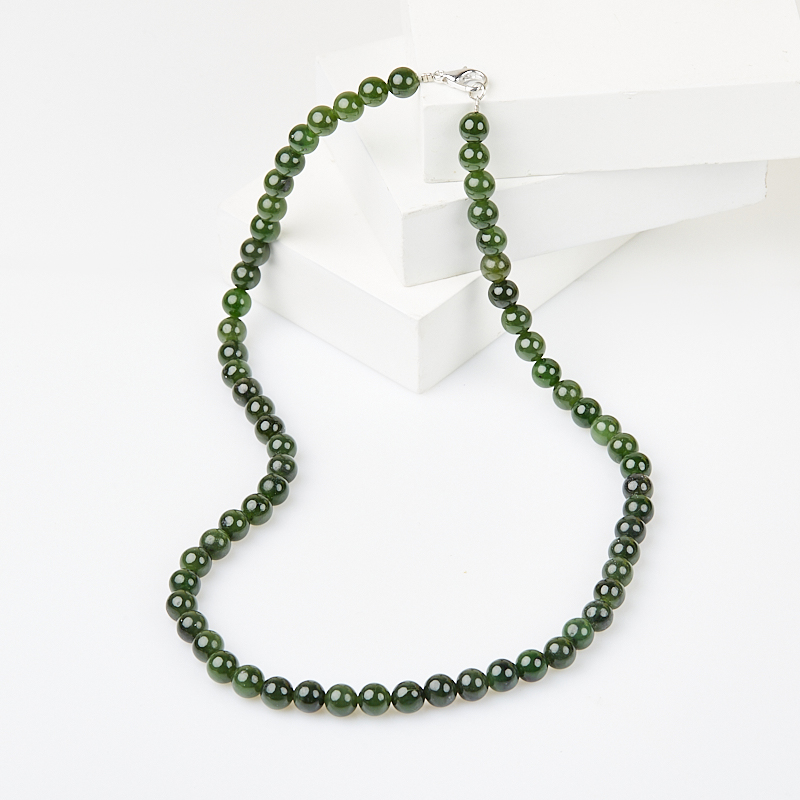 Бусы нефрит зеленый Россия (биж. сплав) 8 мм 52 см