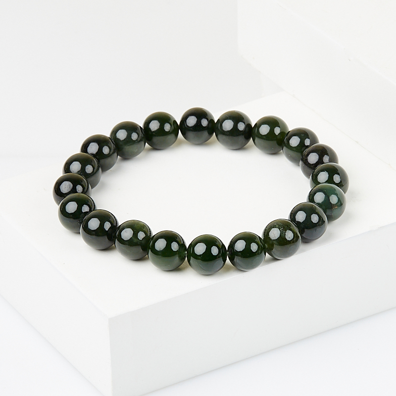 Браслет нефрит зеленый Россия 9 мм 17 см