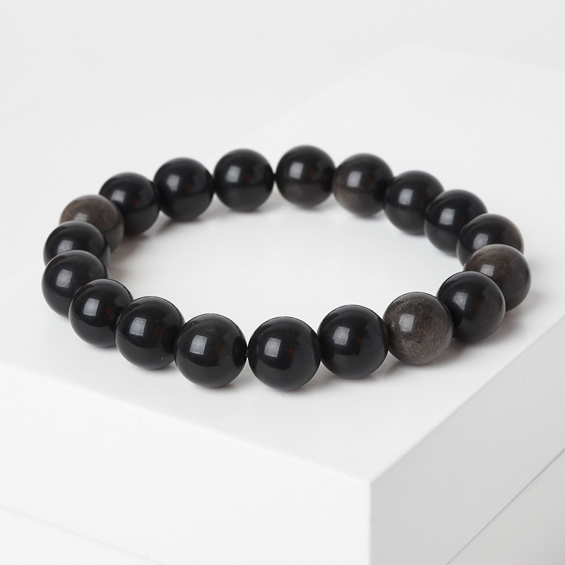 Браслет обсидиан серебристый Мексика 10 мм 20 см