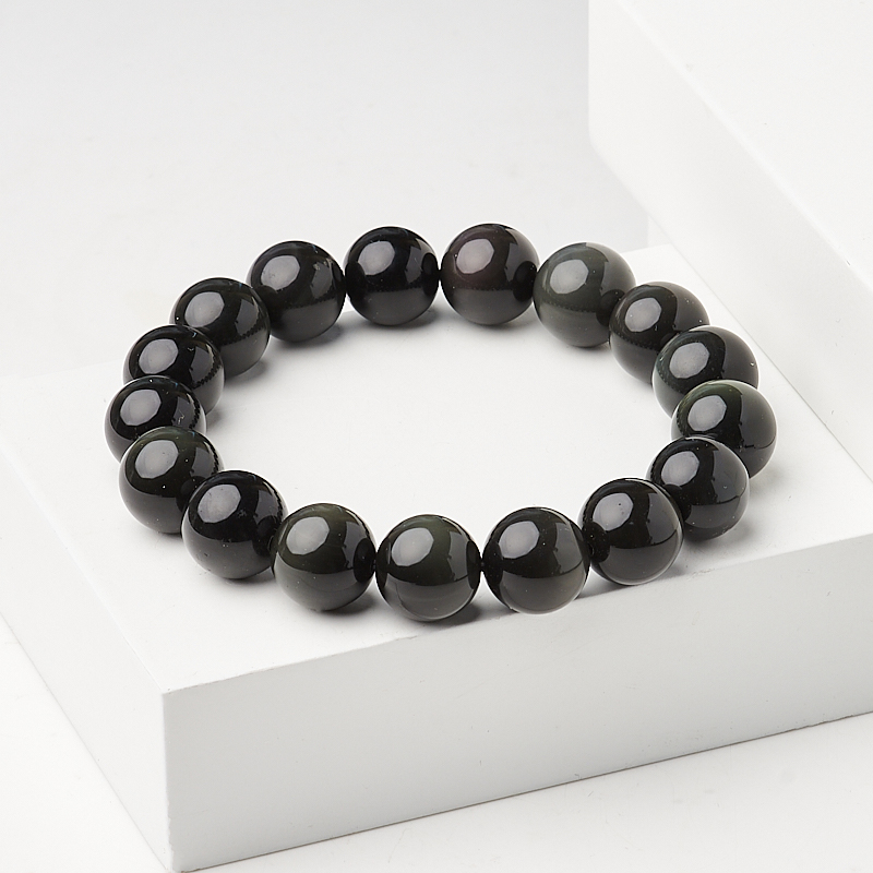 Браслет обсидиан радужный Мексика 12 мм 20 см