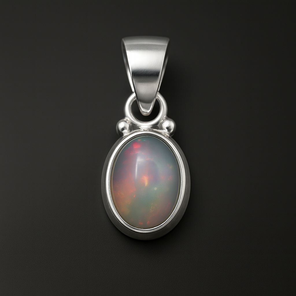 Кулон опал благородный белый Эфиопия (серебро 925 пр. родир. бел.) овал