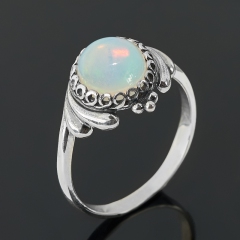 Кольцо опал благородный белый Эфиопия (серебро 925 пр. оксидир.) размер 18,5