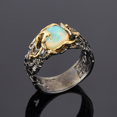 Кольцо опал благородный желтый Эфиопия (серебро 925 пр. позолота, родир. сер.) размер 17,5