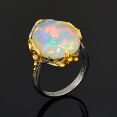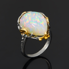 Кольцо опал благородный желтый Эфиопия (серебро 925 пр. позолота, родир. черн.) размер 18