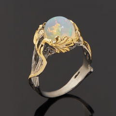 Кольцо опал благородный белый Эфиопия (серебро 925 пр. позолота, родир. черн.) размер 18,5