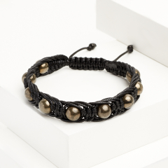 Браслет пирит Перу (текстиль) шамбала 8 мм 16 см (регулируемый)