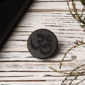 Пластина шунгит полированный с гравировкой Ом Россия 3 см