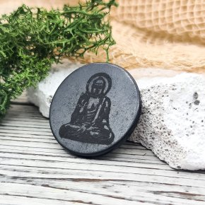 Шар шунгит Россия с глубокой гравировкой Будда 10 см