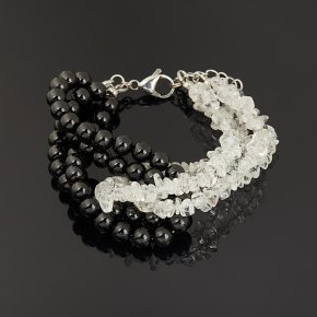 Браслет микс горный хрусталь, турмалин (сталь хир.) 17 см (+3 см)