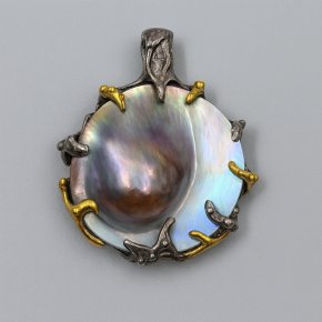 Кулон жемчуг мабэ серый Гонконг (серебро 925 пр. позолота, родир. сер.) круг