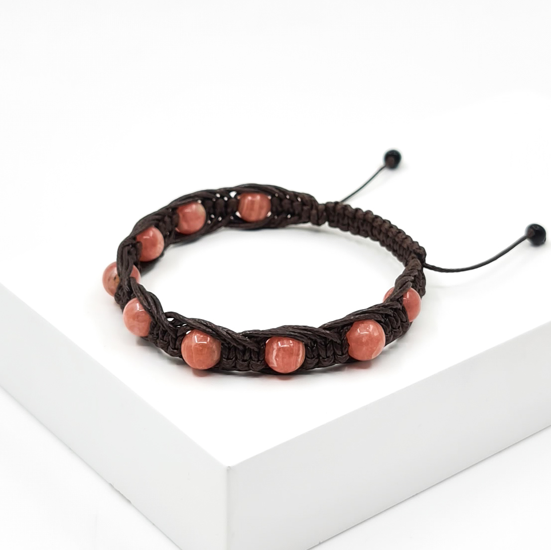 Браслет родохрозит Аргентина (текстиль) шамбала 7 мм 16 см (регулируемый)