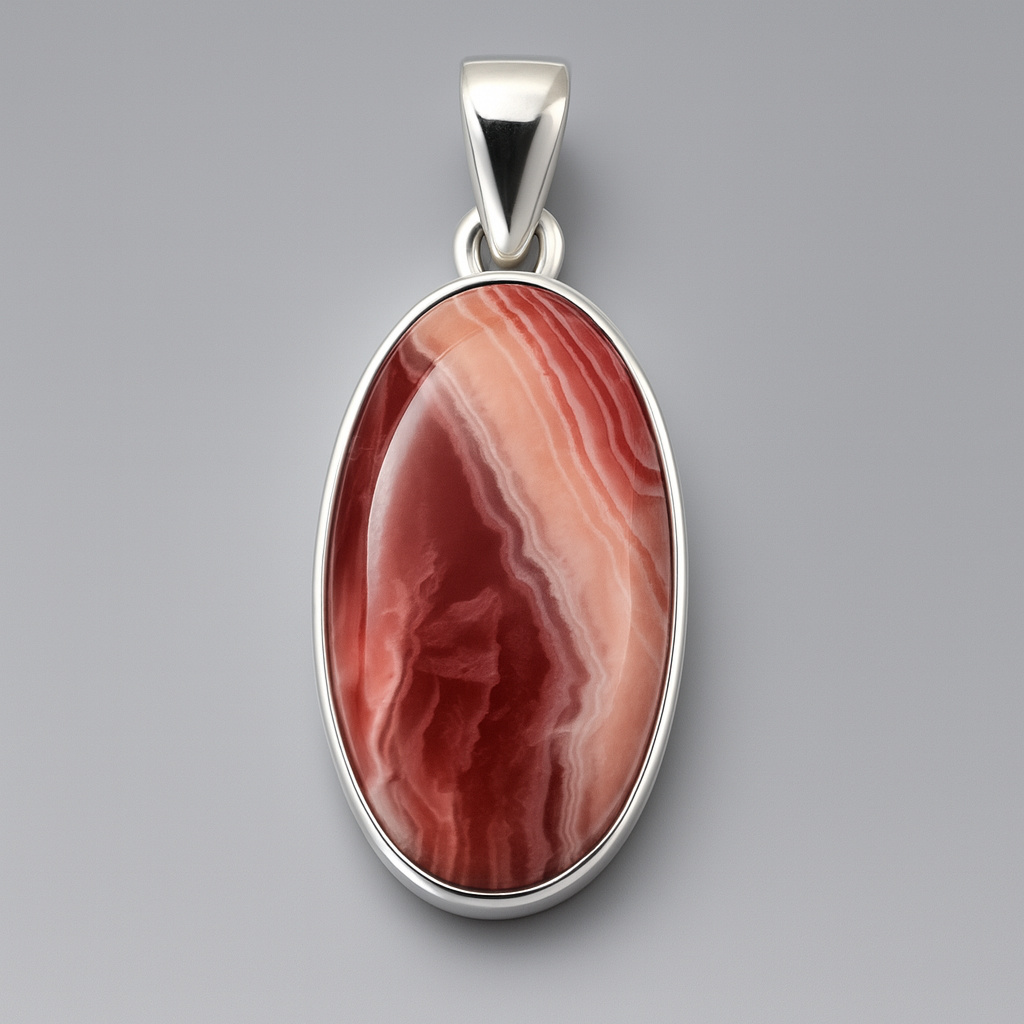 Кулон родохрозит Аргентина (серебро 925 пр. родир. бел.) овал