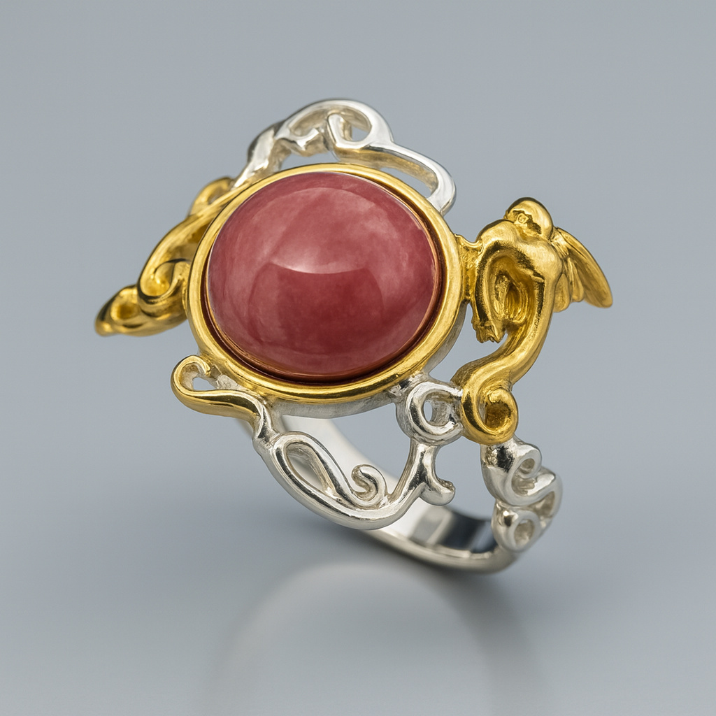 Кольцо родонит Россия (серебро 925 пр. позолота, посеребр.) размер 18,5