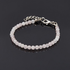 Браслет розовый кварц Бразилия (сталь хир.) огранка 4 мм 17 см (+3 см)