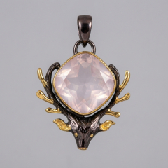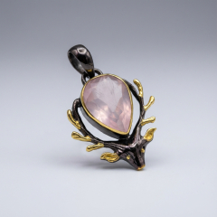Кулон розовый кварц Бразилия (латунь оксидир., позолота) огранка 2,5 см