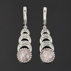 Серьги розовый кварц Бразилия (серебро 925 пр. оксидир.)