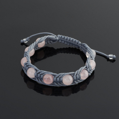 Браслет розовый кварц Бразилия (текстиль) шамбала 8 мм 18 см (регулируемый)