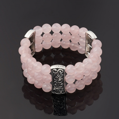 Браслет розовый кварц Бразилия (биж. сплав) 8 мм 18 см