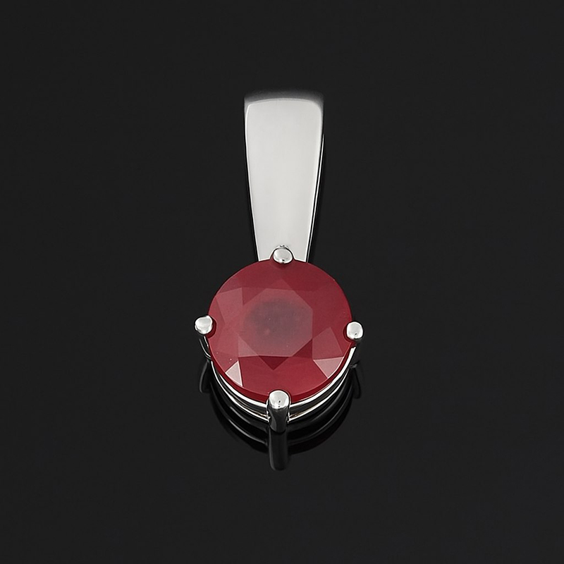 Кулон рубин Мьянма (серебро 925 пр. родир. бел.) круг огранка