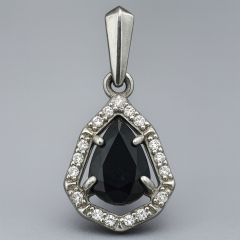 Кулон сапфир Индия (серебро 925 пр. родир. бел.) капля огранка