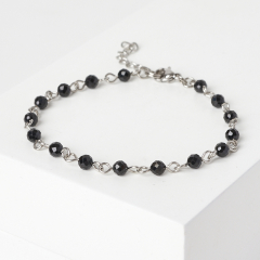 Браслет шпинель Шри Ланка черная огранка 4 мм 17 см (+3 см) (сталь хир.)