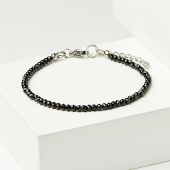 Браслет шпинель черная Шри Ланка (сталь хир.) огранка 4 мм 16 см (+3 см)