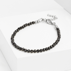 Браслет шпинель черная Шри Ланка (сталь хир.) огранка 3 мм 18 см (+3 см)