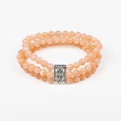 Браслет солнечный камень Индия (сталь хир.) 6 мм 17 см