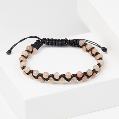 Браслет солнечный камень Индия (текстиль) шамбала 4 мм 16 см (регулируемый)