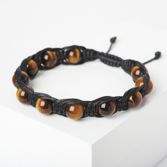 Браслет тигровый глаз ЮАР (текстиль) шамбала 10 мм 17 см (регулируемый)
