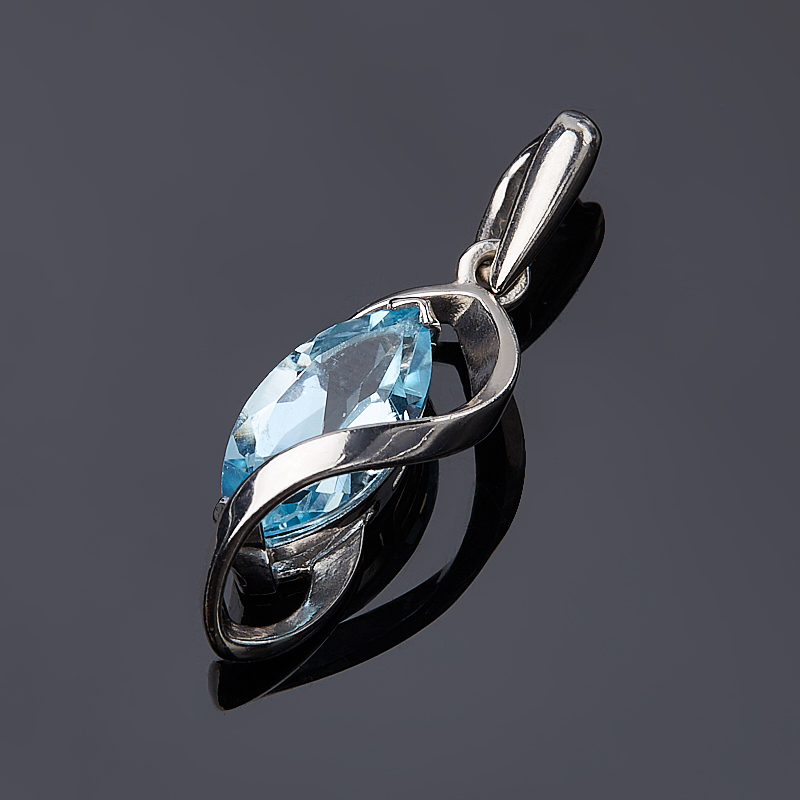 Кулон топаз голубой Бразилия (серебро 925 пр. родир. бел.) огранка