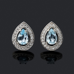 Серьги топаз голубой Бразилия (серебро 925 пр. родир. бел.) пуссеты огранка