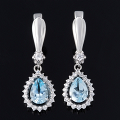 Серьги топаз голубой Бразилия (серебро 925 пр. родир. бел.) огранка