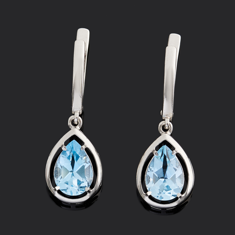 Серьги топаз голубой Бразилия (серебро 925 пр.) огранка