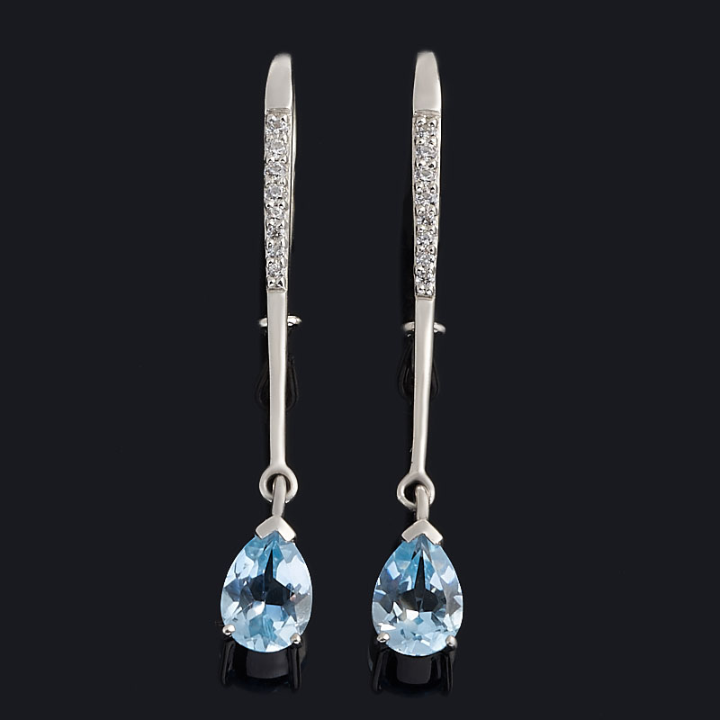 Серьги топаз голубой Бразилия (серебро 925 пр. родир. бел.) огранка