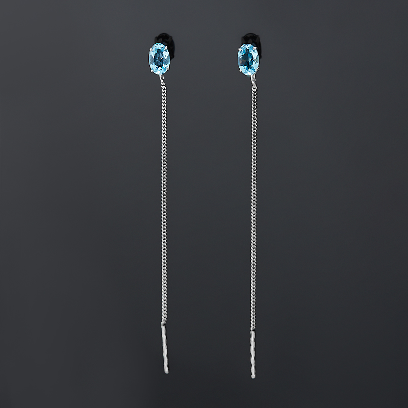 Серьги топаз swiss Бразилия (серебро 925 пр. родир. бел.) протяжки огранка