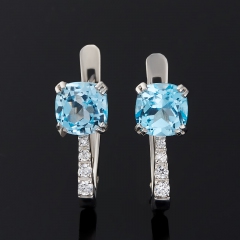 Серьги топаз голубой Бразилия (серебро 925 пр. родир. бел.) огранка