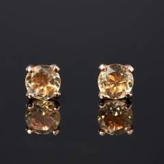 Серьги цитрин Бразилия пуссеты огранка (серебро 925 пр. позолота)