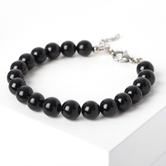 Браслет турмалин черный (шерл) Бразилия (биж. сплав, сталь хир.) 8 мм 16 см (+3 см)