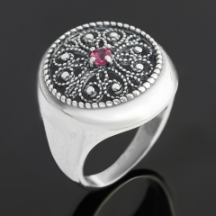 Кольцо турмалин розовый (рубеллит) Бразилия (латунь оксидир., посеребр.) огранка размер 15,5