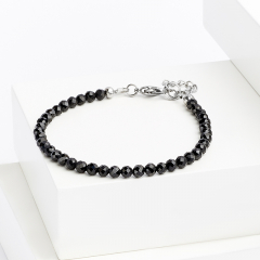 Браслет турмалин черный (шерл) Бразилия (сталь хир.) огранка 4 мм 17 см (+3 см)