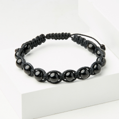 Браслет турмалин черный (шерл) Бразилия (текстиль) шамбала 8 мм 18 см (регулируемый)