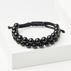 Браслет турмалин черный (шерл) Бразилия (текстиль) шамбала 8 мм 18 см (регулируемый)