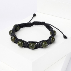 Браслет змеевик Россия (текстиль) шамбала 10 мм 19 см (регулируемый)