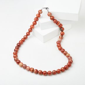 Бусы яшма красная ЮАР (сталь хир.) 10 мм 46 см (+7 см)
